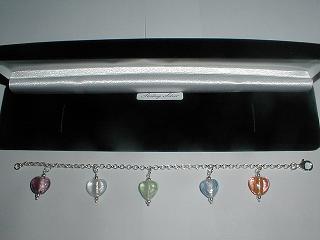 STERLING SILVER Delightful Multi - Coloured Glass 12mm Silver Foiled Hearts With Several 6mm Sterling Silver Ball Beads Set On a Sterling Silver Belcher Chain Bracelet With a Lobster Clasp. Please See Matching Sterling Silver Earrings and Pendants From Our Home Page Front Index. Complete in a Superb Black Imitation Velvet Presentation Box SORRY CURENTLY OUT OF STOCK