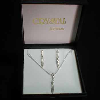 Please See Our Range of Beautiful Swarovski Crystal Pendants and Earring Sets in Two Sizes on the Front Home Page IndeX Also our Swarovski and Sterling Silver Earrings. All are Presented in Superb Quality Black Imitation Velvet Presentation Boxes with Swarovski Crystal and Sterling Silver Labels inside of each Presentation Box. |
