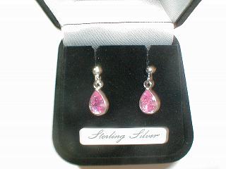 Delightful 925 Sterling Silver Teardrop Earrings with Pretty Pink Cubic Zirconia Stones. Complete in a Black Imitation Velvet Earring Presentation Box.