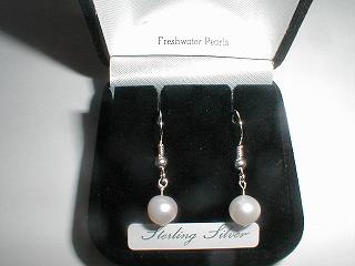 Mother of Pearl Drop Bead Earrings. Hanging From Sterling Silver Earwires. Comes Complete in a Imitation Black Velvet Presentation box.