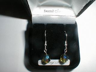 Delightful Aventurine Green AB Crystal 8mm Sparkling Faceted Glass Earrings Hanging from Sterling Silver Earwires. Complete in a Black Imitation Velvet Presentation Box.