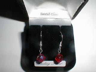 Delightful Red AB Crystal 8mm Sparkling Faceted Glass Earrings Hanging from Sterling Silver Earwires. Complete in a Black Imitation Velvet Presentation Box.