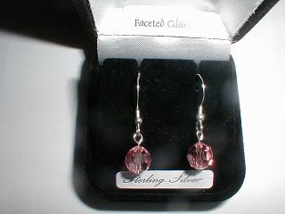 Delightful Rose Pink AB Crystal 8mm Sparkling Faceted Glass Earrings Hanging from Sterling Silver Earwires. Complete in a Black Imitation Velvet Presentation Box.
