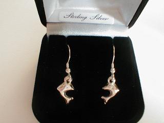 Delightful Shiny Small Dolphin Charms Sterling Silver Earrings. Complete in a Black Imitation Velvet Presentation Box.