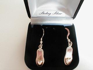 Delightful Shiny Slipper Charms Sterling Silver Earrings. Please see matching pendants on home page index. Complete in a Black Imitation Velvet Presentation Box.