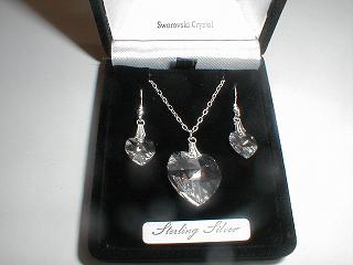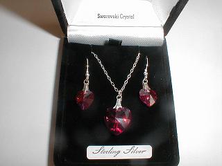 A Delightful and Exquisite Faceted Heart Shape Pendant & Earring Set. The 14MM Swarovski Heart Pendant Shines Beautifully as it Hangs From a Sterling Silver chain. The two smaller 10mm faceted Swarovski Crystal Hearts are Set on Sterling Silver Earwires, however the Bail Mount is Silver Plated. Now Comes Complete in a Black Imitation Velvet Presentation Box.